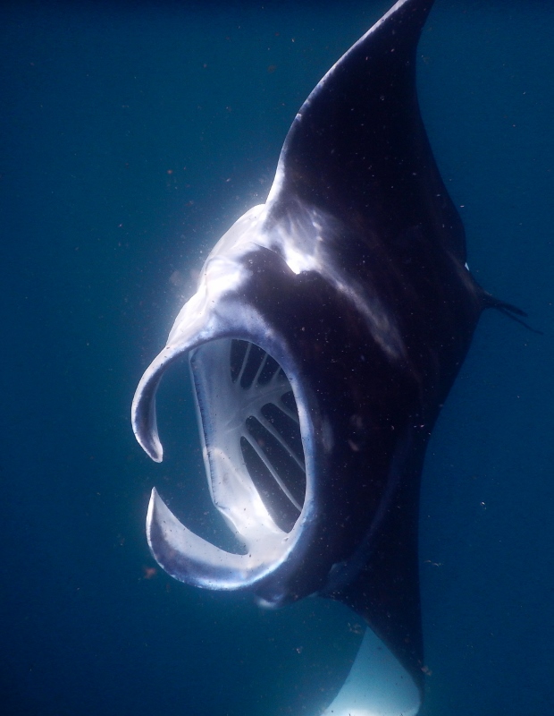 As we leave the southern coast to go to the north coast to a beautiful anchorage in Anaho Bay we meet a school of manta rays and I jump in the water to scope them out, resolutely shoving any thoughts about the morning’s shark feeding frenzy 300 m away at the wharf to the back of my mind. At first there are just two mantas, but soon I’m surrounded by six, elegantly cruising up and down, unperturbed by my presence. Having a whole flock to hang with calms my nerves – surely there are safety in numbers, even if the others are a different species – and I call in the others. The kids are whooping with delight as the huge rays glide up towards them exposing their gaping mouths flanked either side by large cephalic lobes which gently push the water through to a seemingly thoroughly hollow interior (where is its gut?!?), only swerving at the last moment as they turn upside down, beat their wingtips and sway back down into the depths. They are graceful and majestic, beautiful contrasts of black and white, and it is incredible to be swimming with a whole group of huge animals. In the end we reluctantly exit the water and get on our way, only to see a large hammerhead shark cruising by when we round the corner.