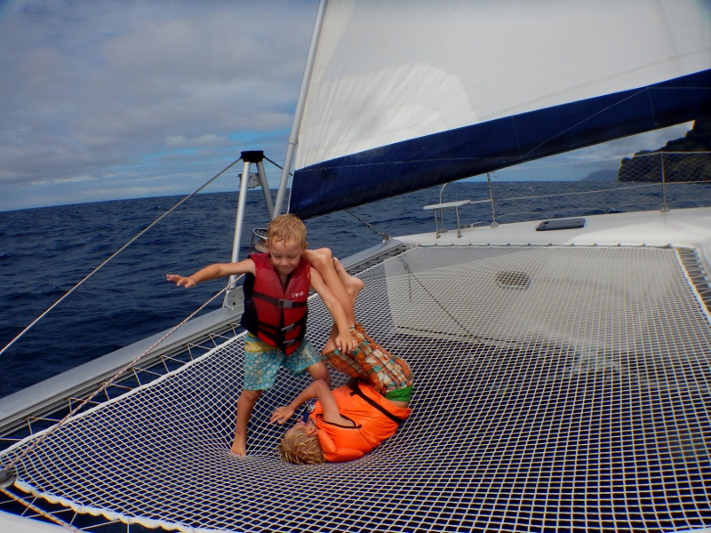 And then the time has come to say goodbye to Sarah and Steve. They have been with us for three months now, through ups and downs, passages and islands, winds and doldrums, fresh mahi mahi and corned beef. It has been awesome to have them on board and the kids are inconsolable when they leave. Thankfully Val and Seb are here with all the distractions of newcomers and spirits soon rise with Matias reading on his new kindle and Lukie playing the Zombie dice game that Val brought along.