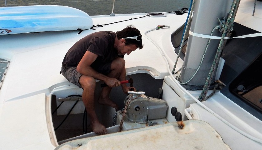 “Let’s change the chain,” he said cheerfully. “We’ll get 10 mm chain instead of 12 mm, which will lighten up the boat. I’ll order it for Whangarei and we’ll just nip into the marina to get it, put it on and then check out and leave.” He smiled. “Easy peasy.”