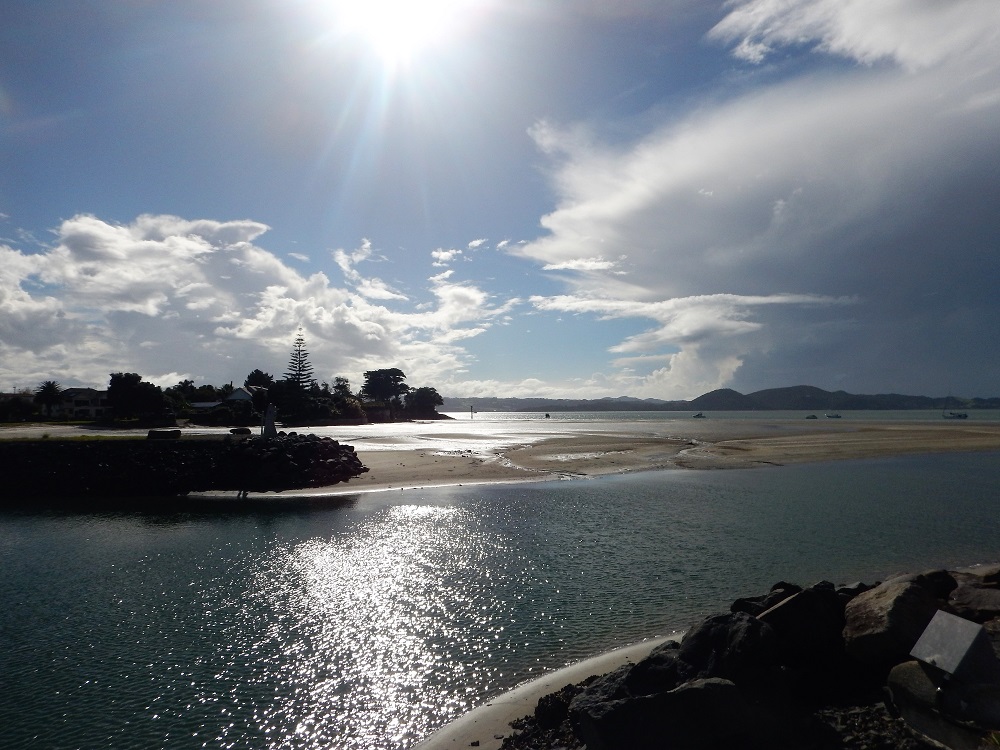 On the other hand, the weather here isn’t optimal either. We’re anchored just outside the Opua Marina, in the channel at the mouth of the Kawakawa River. This morning, our barometer seems stuck on ‘Depression – low’, and the Northland sunshine is frequently interrupted by blasts of wind and rain.