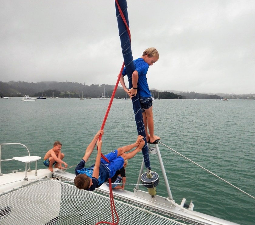 Not that we haven’t taken them out – apart from countless supermarket visits where they’ve been in charge of steering dangerously overloaded trolleys through the aisles, we’ve visited local beaches and swimming pools. It has also helped that there have been friends around. We’ve been catching up with Nico and Sascha and their children Khai and Arix, who used to go to school with Matias and Lukas. They have been living on a yacht in Gulf Harbour Marina for a couple of months, and the boys were thrilled to catch up with them