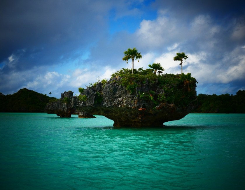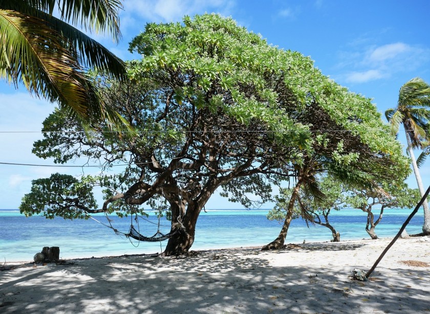 The locals are not the only great thing about Fulaga. The island is one of the most beautiful places I’ve ever seen. It is vivid and glossy, saturating the senses, every glance a photo opportunity. The crescent-shaped island is enclosed by a huge circular lagoon, bordered by wave-pounded reefs. Small uplifted limestone mushroom-shaped islets dot the lagoon, little tufted heads topped by unkempt coconut palms and pandanus, their necks carved by the tidal flows, their shoulders shrouded in aquamarine shallows. It is a picture-perfect tropical paradise – turquoise water, white coral sand, impossibly blue sky, and vividly green inland vegetation dripping with coconuts.