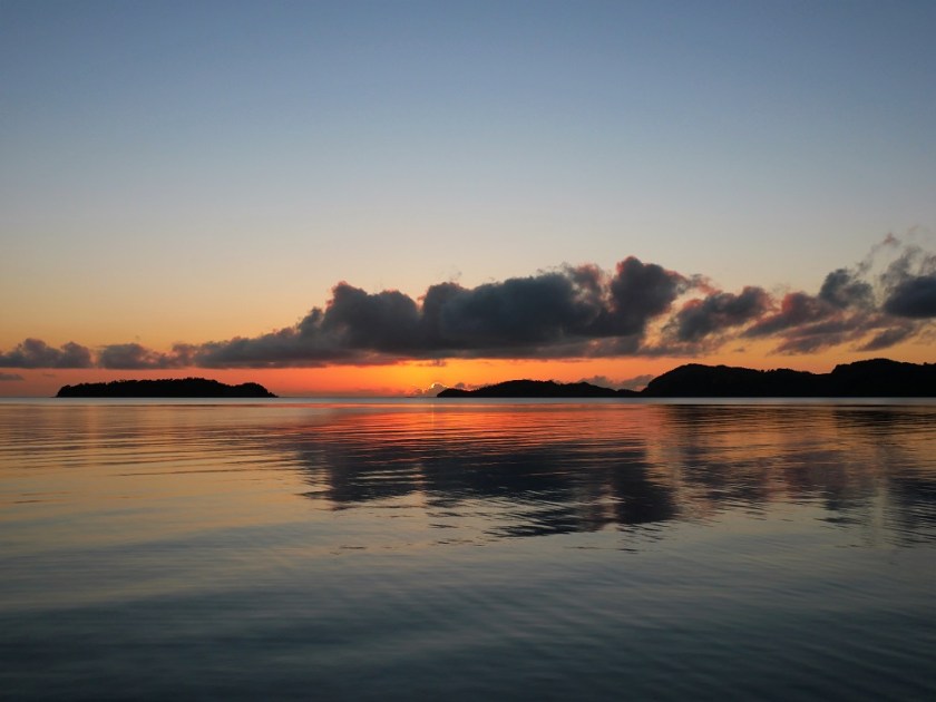 It is dusk, and we’re in the Bay of Islands in Fiji, which is located on the north-western side of Vanua Balavu, a large island in the northern Lau Group. We’re watching the local fruit bats taking off for a night of festive foraging.