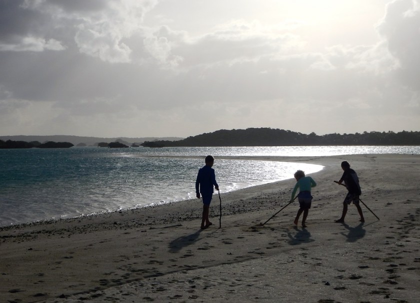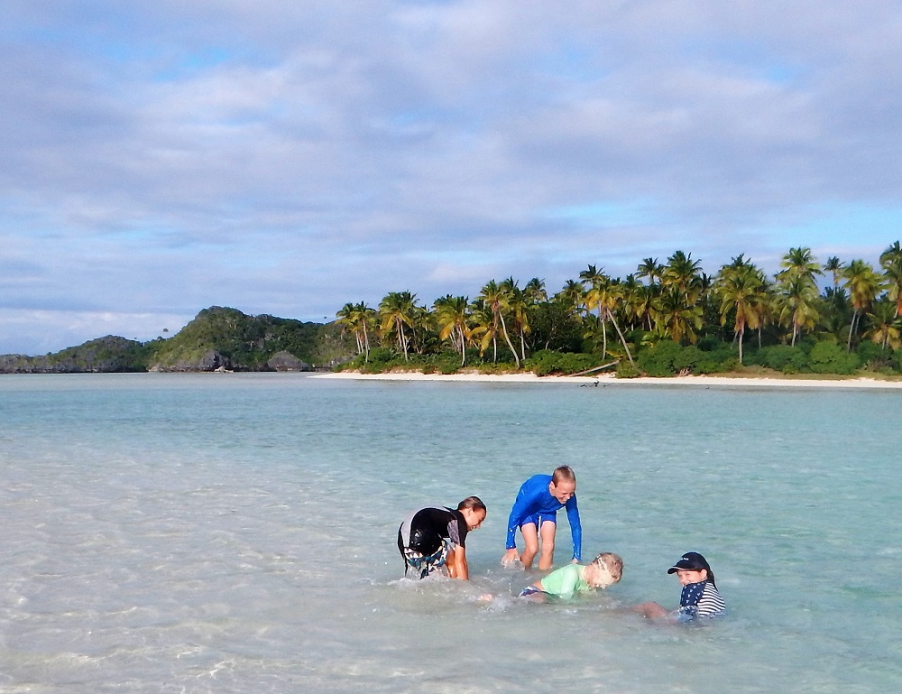 There are two other boat families here, and the kids enjoy endless playdates on the beach and on the boats. They swim and run and walk everywhere together, playing imaginative games involving few ingredients other than water, sand, coconuts, twigs. When it is windy, we use the sandspit for kitesurfing, the kids attempting to learn or just playing in the sand or water for hours on end while the grown-ups enjoy the rarity of flat water and a beach to launch from.