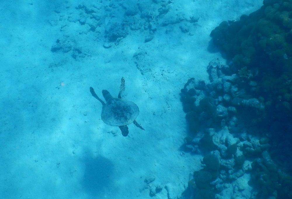 Underwater is beautiful too. Shallow rocky outcrops are home to coral reefs teeming with fish, turtles and baby blacktip reef sharks. Soft, colourful corals sway gently in the underwater currents. Octopi hide in numerous crevices, pretending to be rocks as we approach only to turn a deep dark red colour just before sliding back into their hole once they know we’ve spotted them.