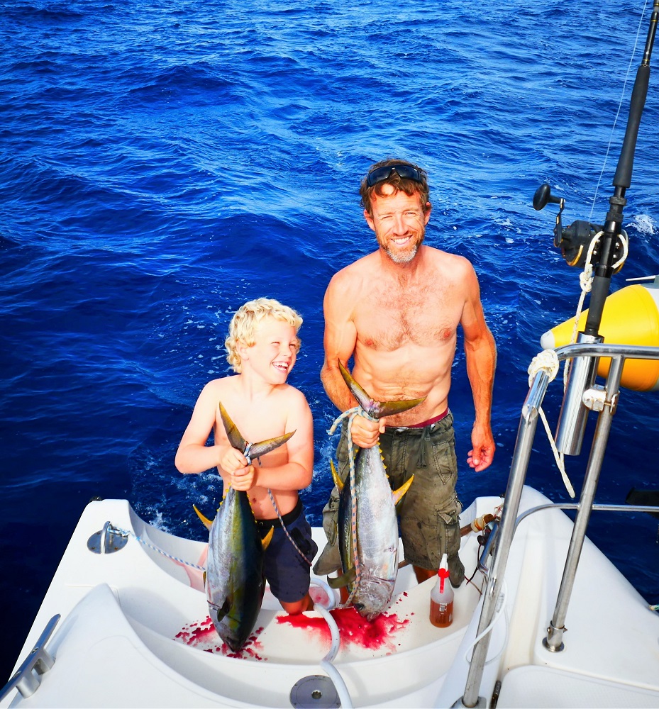 The fishing made up for the uncomfortable conditions, and we hauled in yellowfin tuna aplenty, giving fish to every village we passed and filling up the freezer and fridge to boot.