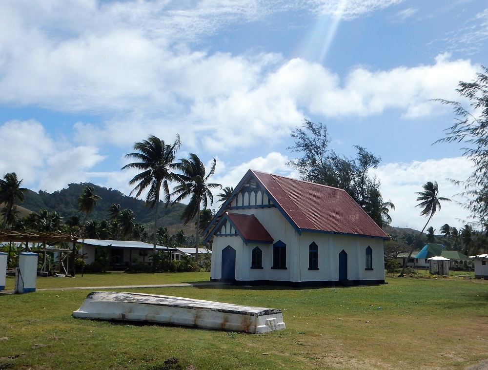 The sermon is mainly in Fijian, but towards the end a small, animated woman stands up by the pulpit and delivers an address in thundering English, reaching out to the yachties by relating Jesus our Lord the Saviour to a safe anchorage in a storm, our only way past damnation to eternal life.