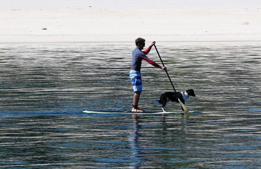 Having been here for a few days, we know that she loves boats – as soon as she sees us on anything that floats (paddleboard, kayak, dinghy), she swims out excitedly and tries to jump on board. If we refuse her advances she swims after us desolately for hundreds of metres, puffing for breath and guilting us with her big brown eyes.
