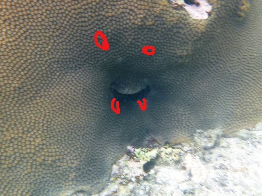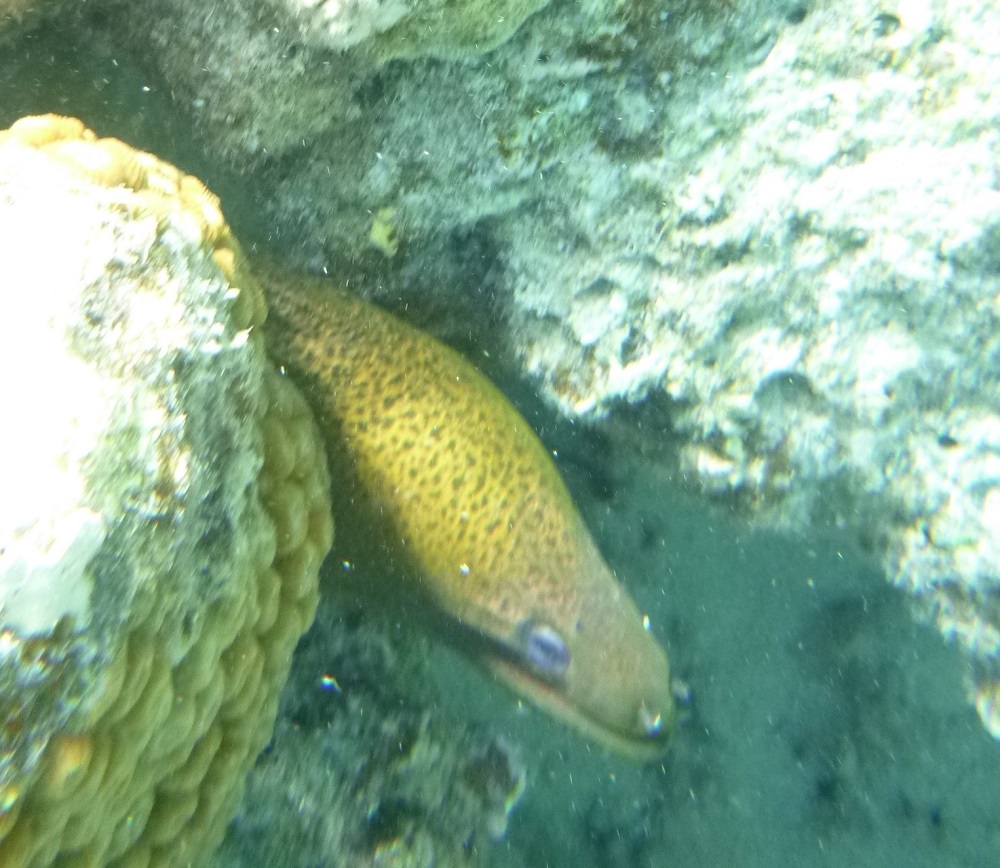 Snorkeling with George.Ninja coral which sneaked up on me.Moray eel.Crawl. “Goodbye.” Crawl, crawl, crawl.