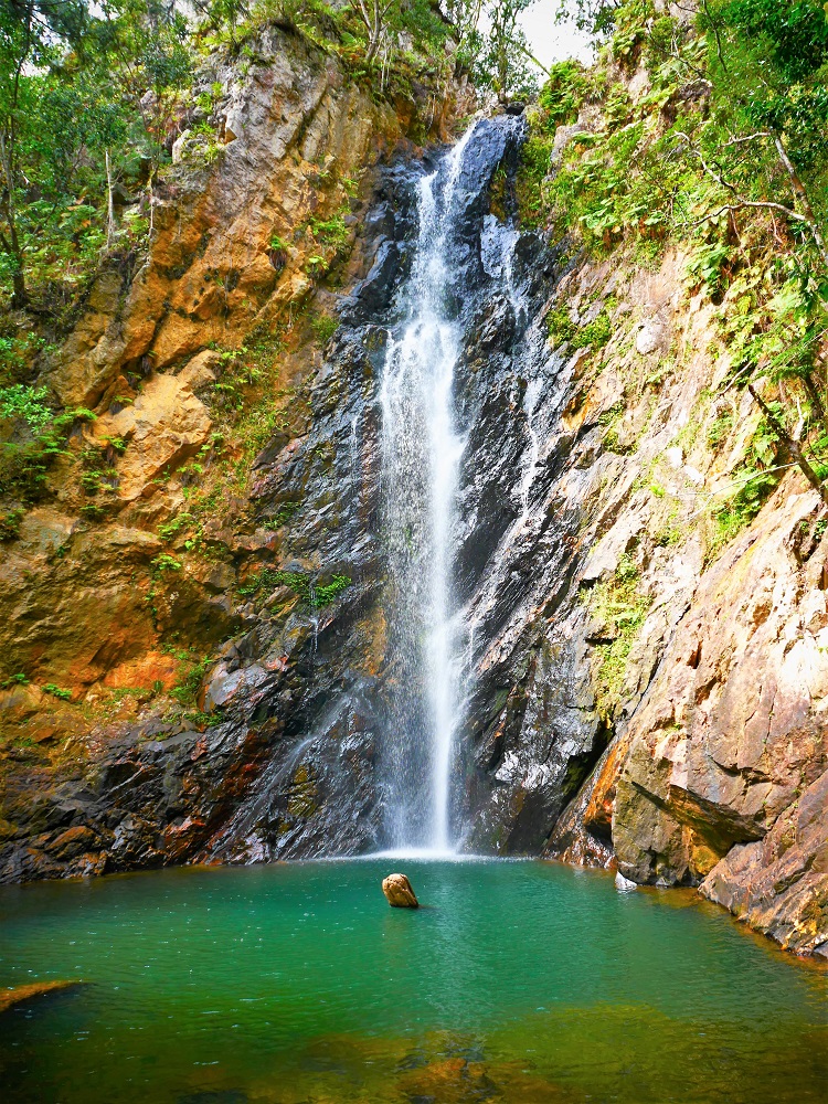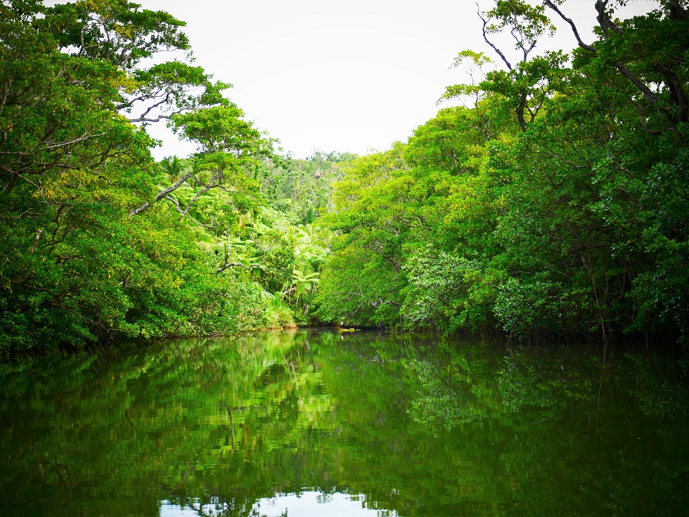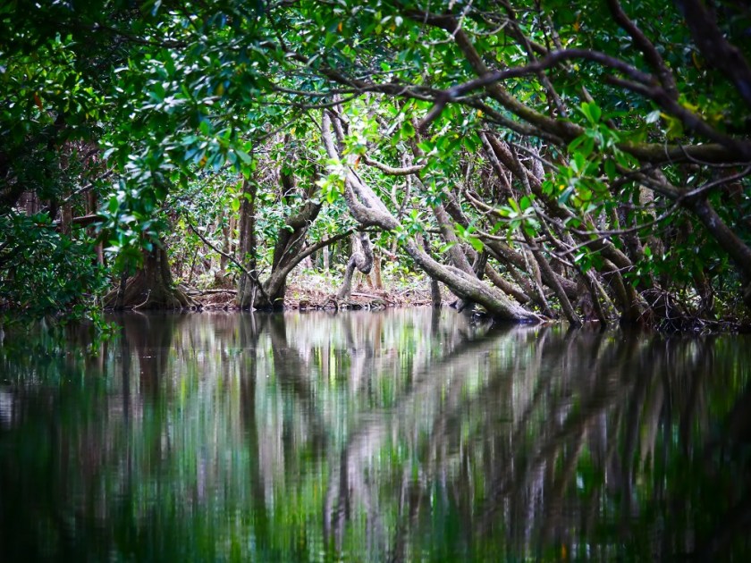40-metre waterfall.Quiet, long rivers reaching inland through miles of mangroves.A drowned forest at the inland end of the river.