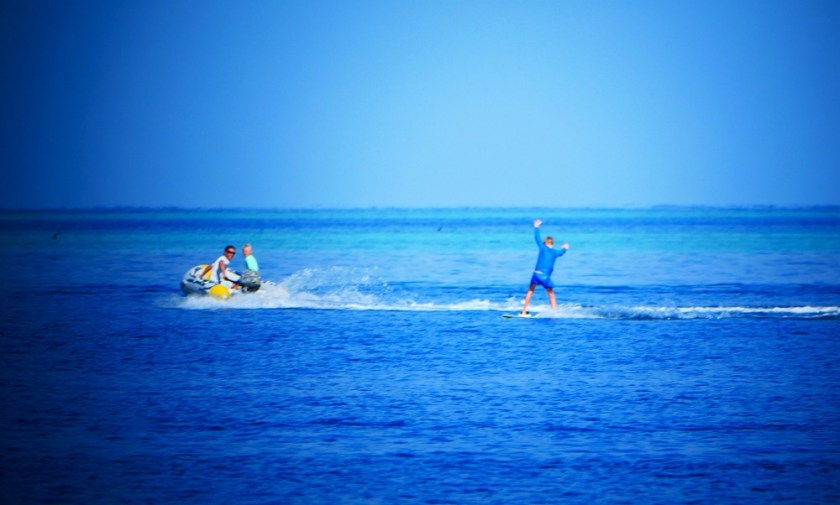 If you let go of the handle you will start sinking because you have nothing to hold you up (unless you are going really fast, then you skid along the water for about five seconds). Sometimes we fall off (it can be quite brutal, I fell and bumped my forehead). Here are some pictures, enjoy!