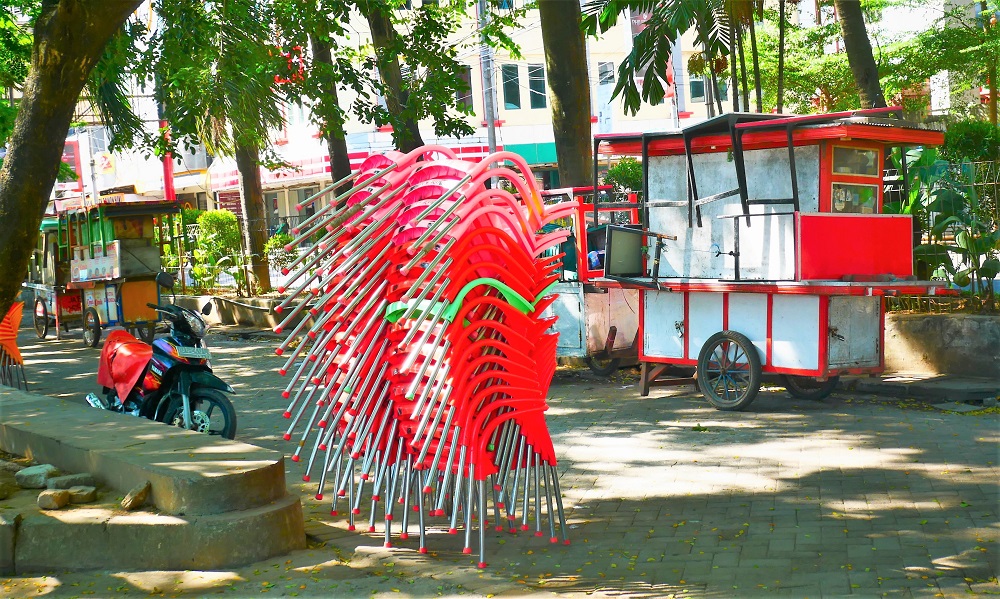 After a week of surfing and kitesurfing every day and staying on a boat that was rolling like a Spanish bull trying to throw off a brutal toreador, we were tired and sore and in thorough need of a good rest. The swell mildened giving us a lucky break to exit the bay, and with Paco emitting an audible sigh of relief we put the wild southern coastline of Lombok behind us and headed for the west coast of the island to visit Lombok’s capital Mataram where we needed to do our last (!) Indonesian visa renewal.