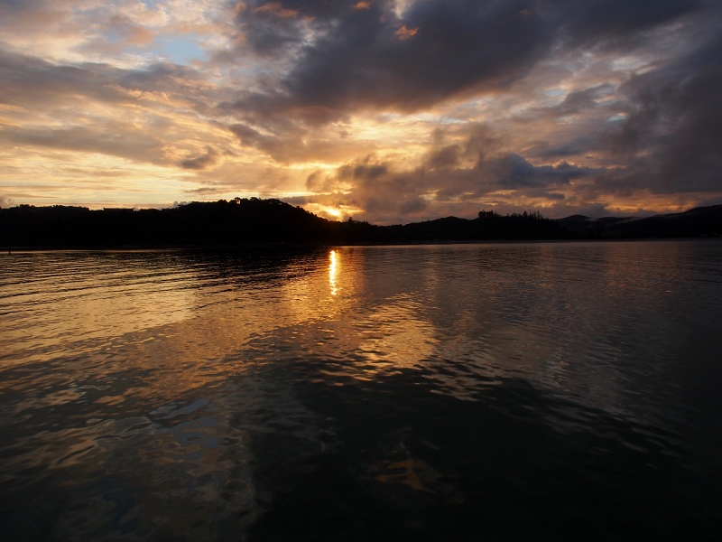 The trip to New Zealand is meant to be awful, with many cruisers meeting fierce winds and heavy seas, but our passage proved uneventful, no doubt thanks mainly to David’s extensive experience with weather forecasting. After five days with good winds and a relatively calm sea, we sighted land just before midnight on Thursday. At sunrise the wind was completely gone, and in a magic moment a welcoming pod of dolphins amused themselves in our bow wave, clicking and squeaking so loudly as they glided through the oily still waters that I could clearly make out the message.