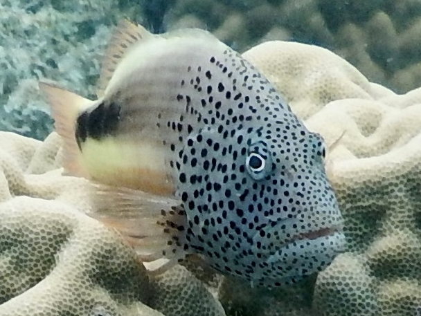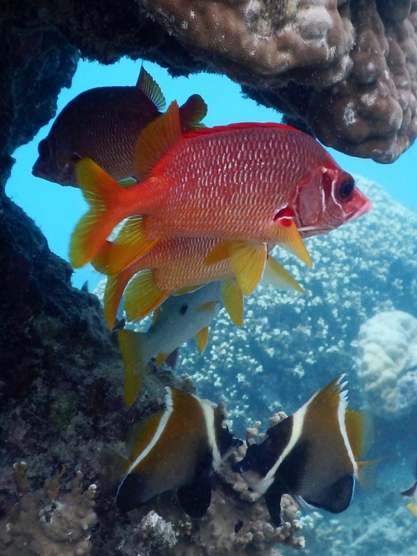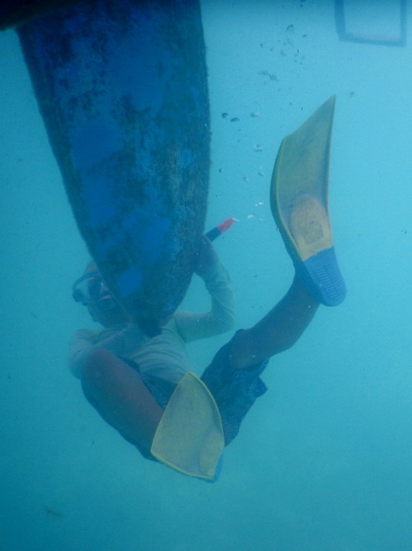 A giant trevally and three remoras soon took up permanent residence under the boat; whenver we jumped in the water they would swim towards us in a hopeful manner, perhaps thinking that we were going to feed them.