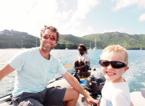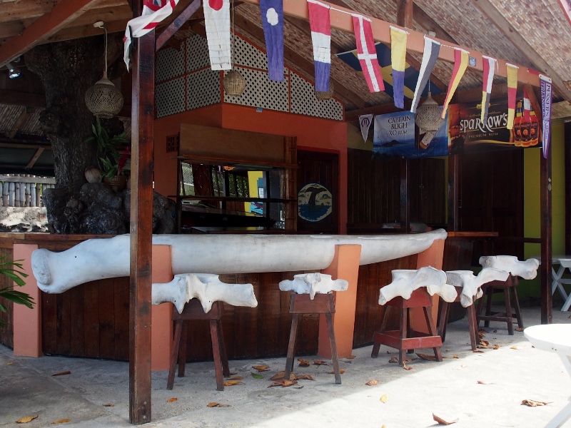 The town is pretty and full of character. Set on a steep hill, the main road lines the waterfront, with colourful houses dotted on the hillside behind. A narrow strip backed by colourful flowering trees and cosy looking restaurants lines the southern end of the harbour where we’re anchored. Conch shells are everywhere, and one day for lunch we try a conch roti. A bit chewy, but Lukie loves it… A restaurant on the waterfront has furniture made from whalebone, so you can sit and sip your cold beer, your backside planted on the vertebrae of a whale.