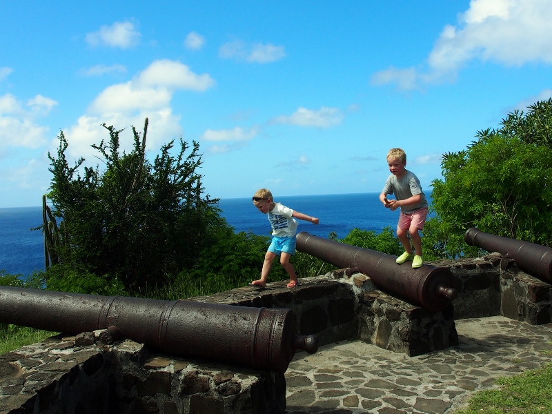 On the northern hill overlooking the bay and the sea beyond sits a small fortress, complete with black canons pointing out the sea. Apparently of the five canons two were French and three English – the two nations fought each other fiercely and would take turns shooting down each other’s warships, but stuck to their separate canons.